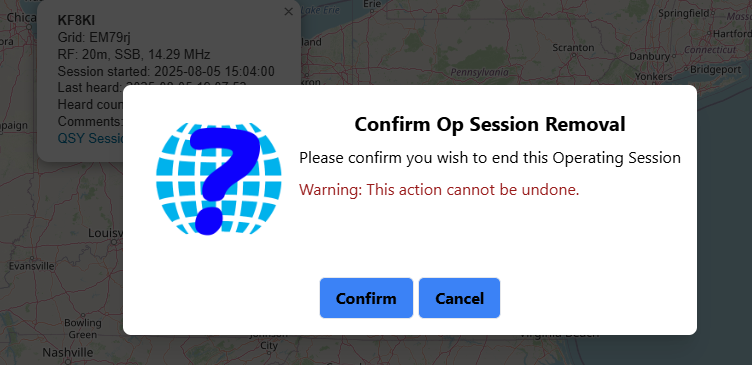 Once you have concluded your operating session or you need to change to a different managed callsign, you would use the "End Session" link. You will be prompted to confirm: