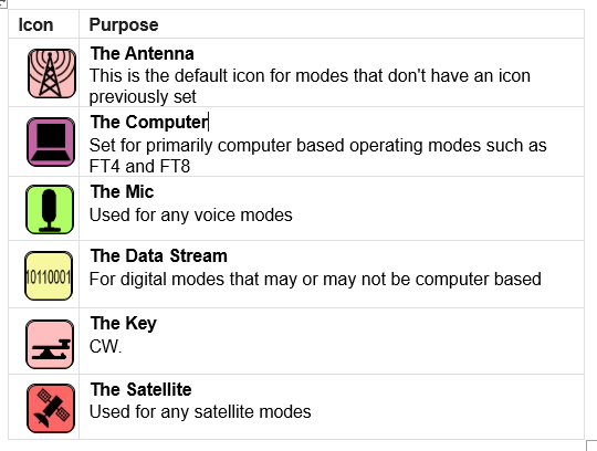 The Real Time QSO Manager assigns an icon to each operating session based on the mode set in the session. These icons are: