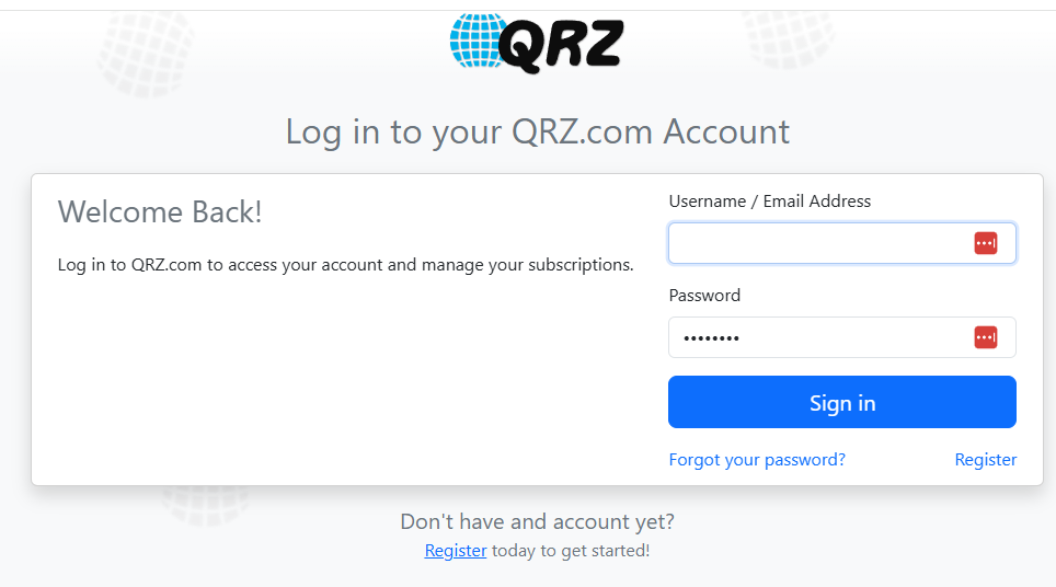 Please use your existing QRZ.com username and password. If you have two factor authentication enabled on your account,